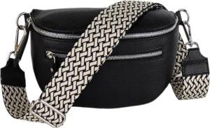 Damen Bauchtasche Umhängetasche 27x14,5x8cm Damen, Made in Italy, aus Echtleder Tasche Echtes Leder, Brusttasche, Crossbody Bag,Bohemian Style (1 Tasche 2 Gurte) (Schwarz Flecht)