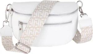 Damen Bauchtasche Umhängetasche 27x14,5x8cm Damen, Made in Italy, aus Echtleder Tasche Echtes Leder, Brusttasche, Crossbody Bag,Bohemian Style (1 Tasche 2 Gurte) (Weiß (Netz))