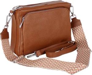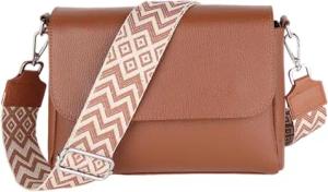 Umhängetasche Damen, Crossbody Bag, Echtleder Made in Italy (1 Tasche 2 Gurte oder Basic Version 1 Tasche 1 Gurt), 27x20x7cm (BXHXT) Mittelgroß (Upgrade Version (mit 2 Gurte): Cognac Boho)