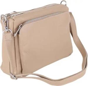 Umhängetasche Damen, Crossbody Bag, Echtleder Made in Italy (1 Tasche 2 Gurte oder Basic Version 1 Tasche 1 Gurt), 27x19x10cm (BXHXT) Mittelgroß (Helltaupe (Basic mit 1 Gurt))