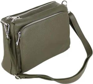 Umhängetasche Damen, Crossbody Bag, Echtleder Made in Italy (1 Tasche 2 Gurte oder Basic Version 1 Tasche 1 Gurt), 27x19x10cm (BXHXT) Mittelgroß (Khaki (Basic mit 1 Gurt))