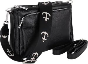 Umhängetasche Damen, Crossbody Bag, Echtleder Made in Italy (1 Tasche 2 Gurte oder Basic Version 1 Tasche 1 Gurt), 27x19x10cm (BXHXT) Mittelgroß (Schwarz (Anker mit 2 Gurte))