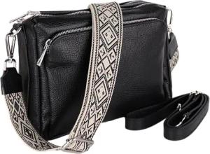 Damen Bauchtasche Umhängetasche 27x14,5x8cm Damen, Made in Italy, aus Echtleder Tasche Echtes Leder, Brusttasche, Crossbody Bag,Bohemian Style (1 Tasche 2 Gurte) (Schwarz Fischgerät)