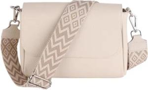 Umhängetasche Damen, Crossbody Bag, Echtleder Made in Italy (1 Tasche 2 Gurte oder Basic Version 1 Tasche 1 Gurt), 27x20x7cm (BXHXT) Mittelgroß (Upgrade Version (mit 2 Gurte): Taupe Boho)