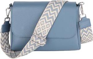 Umhängetasche Damen, Crossbody Bag, Echtleder Made in Italy (1 Tasche 2 Gurte oder Basic Version 1 Tasche 1 Gurt), 27x20x7cm (BXHXT) Mittelgroß (Upgrade Version (mit 2 Gurte): Jeansblau Boho)