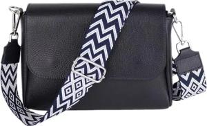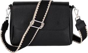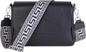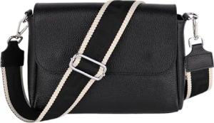 Umhängetasche Damen, Crossbody Bag, Echtleder Made in Italy (1 Tasche 2 Gurte oder Basic Version 1 Tasche 1 Gurt), 27x20x7cm (BXHXT) Mittelgroß (Upgrade Version (mit 2 Gurte): Schwarz Fischgrät)