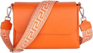 Umhängetasche Damen, Crossbody Bag, Echtleder Made in Italy (1 Tasche 2 Gurte oder Basic Version 1 Tasche 1 Gurt), 27x20x7cm (BXHXT) Mittelgroß (Upgrade Version (mit 2 Gurte): Orange NN)