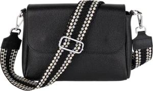 Umhängetasche Damen, Crossbody Bag, Echtleder Made in Italy (1 Tasche 2 Gurte oder Basic Version 1 Tasche 1 Gurt), 27x20x7cm (BXHXT) Mittelgroß (Upgrade Version (mit 2 Gurte): Schwarz Pünktchen)