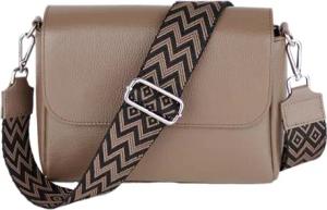 Umhängetasche Damen, Crossbody Bag, Echtleder Made in Italy (1 Tasche 2 Gurte oder Basic Version 1 Tasche 1 Gurt), 27x20x7cm (BXHXT) Mittelgroß (Upgrade Version (mit 2 Gurte): Beige Boho Taupe)
