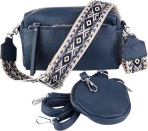 umhängeTasche inkl. 1x Münzbeutel und 2 Wechselgurte Damen Crossbody Bag, 19x14x8cm Kleine Mittelgroß (verstellbaren Schulterriemen), SchulterTasche fürjeden Anlass (Dunkelblau)