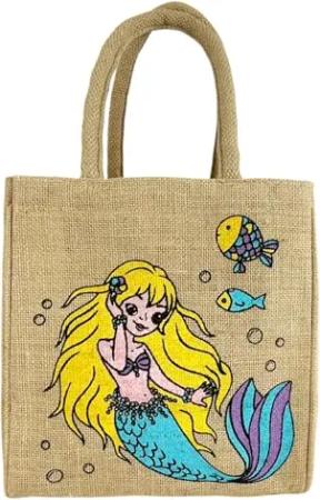 Kinder Handtasche vegane Jute Schultertasche kleine Mädchenhandtasche Jutetasche bedrückte Korb mit Meerjungfrau Mädchen Tragetasche Süße Kleinkinder Kindertasche Jutebeutel als Coole Geschenk