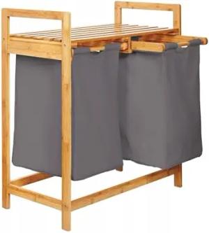 Bambus-Wäschekorb, Badezimmer Regal, Bambus Wäscheregal, Wäschesack, Badregal, Wäschesortierer Dunkelgrau
