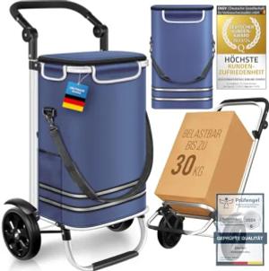 Einkaufstrolley Rolltex Klappbarer 3 in1 Trolley zum Einkaufen; 56 Liter inkl. Kühlfach; Transportwagen Shopping-Trolley Einkaufswagen Einkaufstasche (Blau)