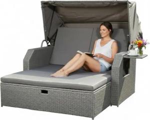 Sonnenbett Outdoor mit faltbarem Dach wetterfest Strandkorb Lounge Muschel Polyrattan | klappbarer Seitentisch | verstellerbare Rückenlehne |