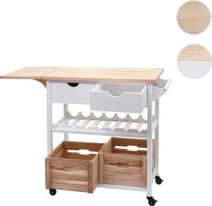 Servierwagen HWC-G35, Küchenwagen Rollwagen Küchenhelfer Beistellwagen Teewagen, Kiefernholz 89x119x41cm ~ natur-weiß