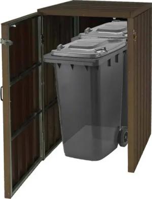 XL 1er-/2er-WPC-Mülltonnenverkleidung MCW-J28, Premium Mülltonnenbox, Metall Holzoptik, erweiterbar braun
