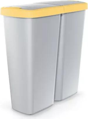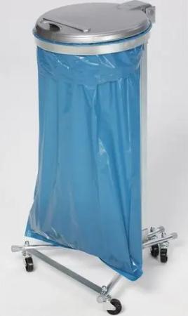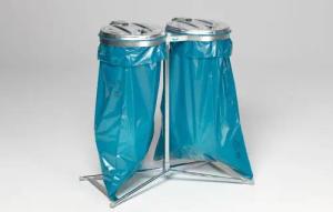Robuster Doppel-Abfallsammler mit Kunststoff-Deckel | Stationär | 2x 120 Liter, HxBxT 98x85x48cm | Stahl | Blau-Schwarz