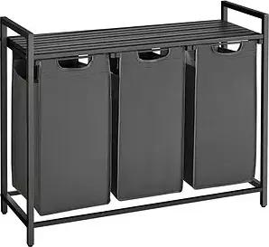 | Wäschesammler -KORIE- | Dekorativer Wäschekorb 90L | Farbe Magnet Grau | Großer Wäschebehälter mit Deckel 40Ø x 54H cm