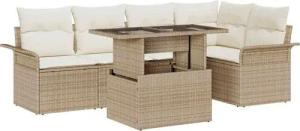Gartensofa-set mit Kissen 6 pcs Beige Poly-Rattan