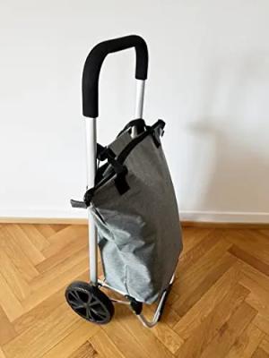 Einkaufstrolley Einkaufswagen De Luxe Grau 60 Liter, 2 leise Gummiräder, Alluminium-Gestell, mit Reissverschluss, klappbar, 91908