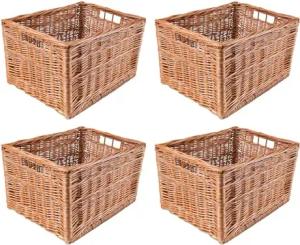 4 x Weidenkorb Aufbewahrungskorb | 40 x 30 x 15 cm (+/- 2 cm) | Handgeflochten, Haltbar | Korb Geflochten Naturkorb mit Griffen Aufbewahrung | Für Regal, Spielzeug, Werkzeug, Bad Korb