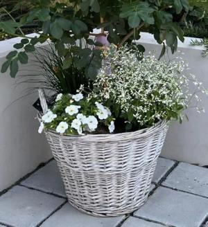 Rattan Pflanztopf mit Kunststoff Einsatz - 33 x 24 cm - Garten Deko Blumenkorb Shabby grau - Drypot Weide Flechtkorb Pflanzen Behälter Blumen Kübel