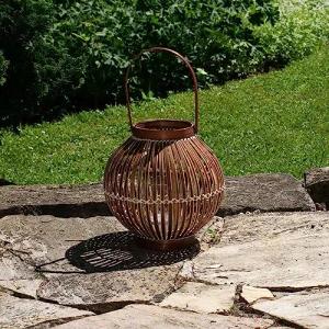 BOURGH Laterne Bambus RIPOSTO - Natur Holz Windlicht, Dunkelbraun, 25 cm hoch, mit Henkel, Kerzenhalter Windlicht Glas - Geeignet als Balkon Deko und für Garten, Terrasse und Wohnung