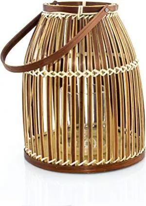 BOURGH Laterne Bambus AGIRA - Natur Holz Windlicht, Dunkelbraun, 26 cm hoch, mit Henkel, Kerzenhalter Windlicht Glas - Geeignet als Balkon Deko und für Garten, Terrasse und Wohnung