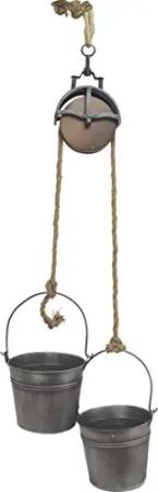 Metalleimer mit Umlenkrolle Deko Set Silber Grau MB27 Seil Dekoration Pflanztopf Pflanzen Blumentopf Kübel Seilwinde Wassereimer