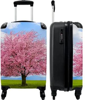 NoBoringSuitcases.com® Koffer Handgepäck - Kabinentrolley, Leichtgewicht, 4 Rollen, Kirschblüten Baummotiv, Zahlenschloss, UV-beständig, 55cm-35cm-20cm