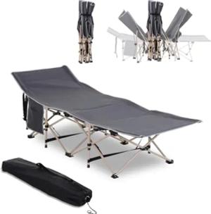Feldbett faltbar Campingbett mit Tragetasche 190 x 68 x 52 cm Campingliege bis 150 kg Gästebett für Erwachsene Klappbett für Indoor, Outdoor, Garten Camping Reisen Grau