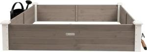Große Hochbeet-Umrandung aus Holz für Garten Terrasse, Pflanzbeet Bausatz XL quadratisch, Blumenbeet Kräuterbeet Beetumrandung niedrig deko, 120 x 120 x 26,5 cm, weiß grau anthrazit