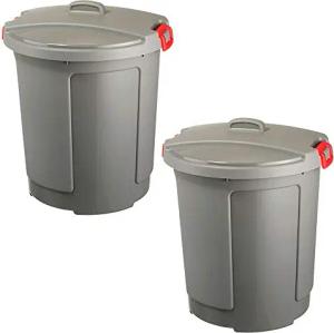 2 Kunststofftonnen/Rundtonnen mit Deckel, 75 Liter, frostsicher bis -20°C, grau