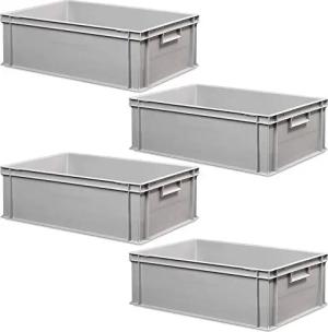 4 Eurobehälter mit 2 Griffleisten, LxBxH 600x400x220 mm, Inhalt 45 Liter, grau