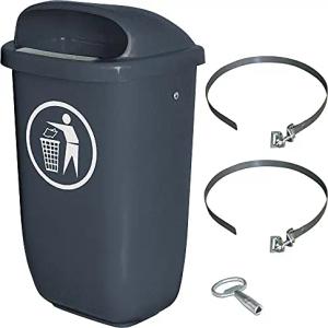 Abfallbehälter für den Außenbereich, Inhalt 50 Liter, nach DIN 30713, im Komplettset mit Schellenband zur Pfahlbefestigung (anthrazit)