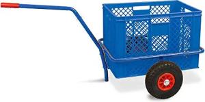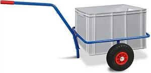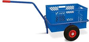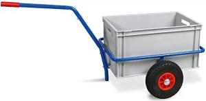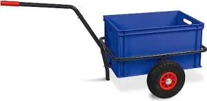 Handwagen mit herausnehmbarem Kunststoffkasten 600x400x420 mm, blau, pannensichere Reifen, Tragkraft 200 kg