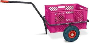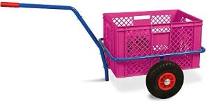Handwagen mit Kunststoffkorb 600x400x320 mm / 63 Liter, pink, Tragkraft 200 kg, pannensichere Reifen