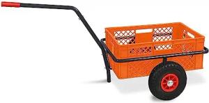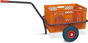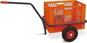 Handwagen mit Kunststoffkorb 600x400x320 mm / 63 Liter, orange, Tragkraft 200 kg, pannensichere Reifen