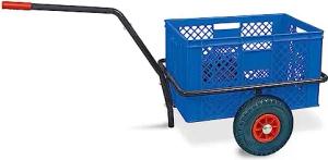 Handwagen mit Kunststoffkorb 600x400x320 mm / 63 Liter, blau, Tragkraft 200 kg, pannensichere Reifen