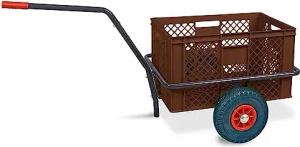 Handwagen mit Kunststoffkorb H 410 mm, LxBxH 1250x640x660 mm, Tragkraft 200 kg (braun)