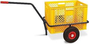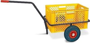 Handwagen mit Kunststoffkorb 600x400x320 mm / 63 Liter, gelb, Tragkraft 200 kg, pannensichere Reifen