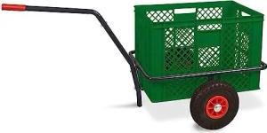 Handwagen mit Kunststoffkorb 600x400x320 mm / 63 Liter, grün, Tragkraft 200 kg, pannensichere Reifen
