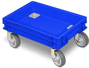 Rollkasten für 400x300mm Eurobehälter, graue Gummiräder, TRG 100 kg, blau