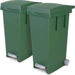Set, 2X 80 Liter Abfallbehälter mit Rollen, Fußpedal, selbstschließender Deckel, Klemmring für Müllsäcke (grün)