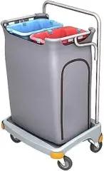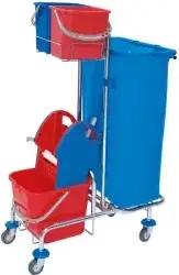 Doppelfahrwagen 17 mit Kunststoffwringer mit Rahmen zum Einhängen von Müllsäcken am Griff
