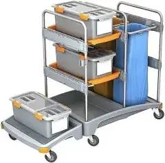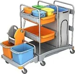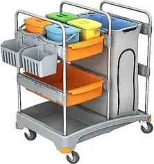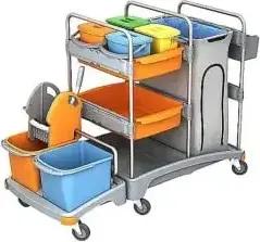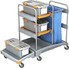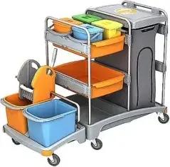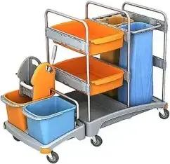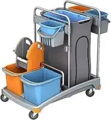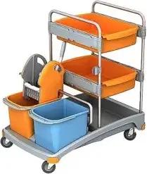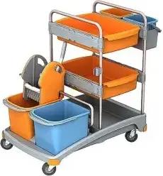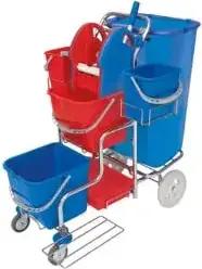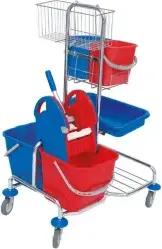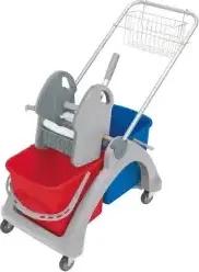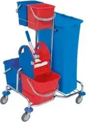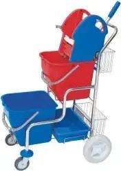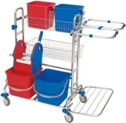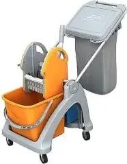 Gerätewagen I - 10 2 x 20 l , 3 x 6 l Eimer - blau / orange, 1 Mopppresse
