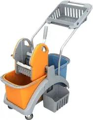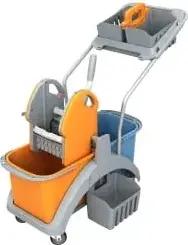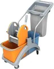 Gerätewagen I - 2 2 x 20 l Eimer - blau / orange, 1 Mopppresse
