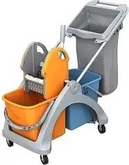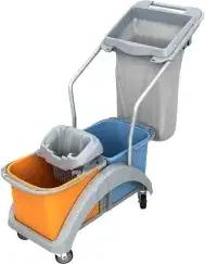 Gerätewagen I - 12 2 x 20 l , 2 x 6 l Eimer - blau / orange, 1 Mopppresse
