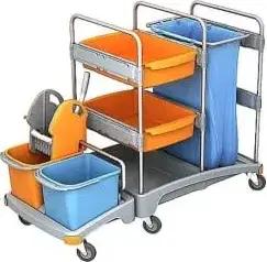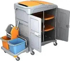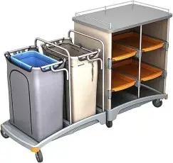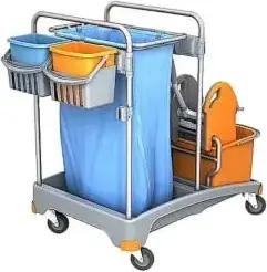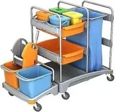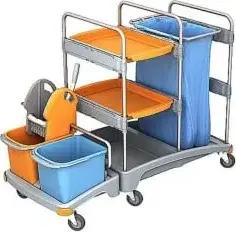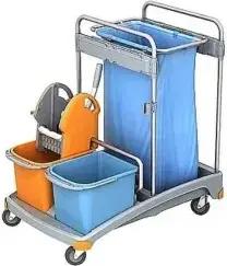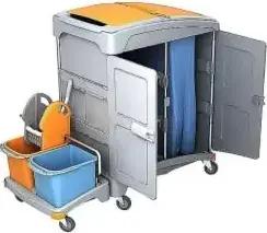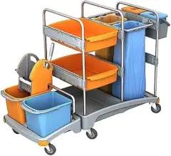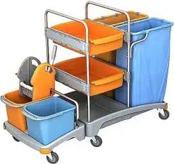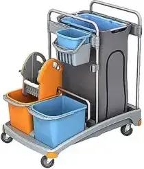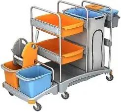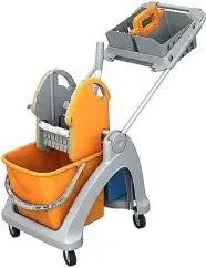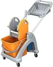 Hotelwagen I - 2 2 x 20 l Eimer - blau / orange, 1 Mopppresse