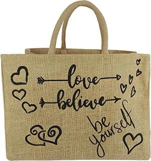 Einkaufskörbe. Bedruckte Einkaufstasche. Jute Tasche groß. Korbtasche, wasserabweisenden Strandtasche. Jutetaschen Shopper als Shopping bag. Nachhaltige Tragetasche (Love Herz)